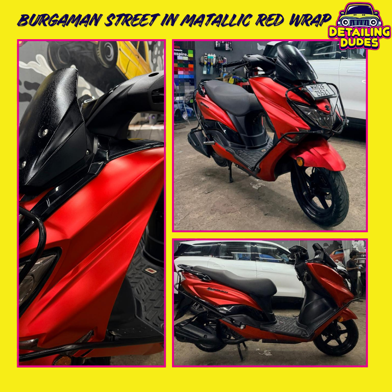 Metallic Red Wrap Transformation – Suzuki Burgman Street | Detailing Dudes