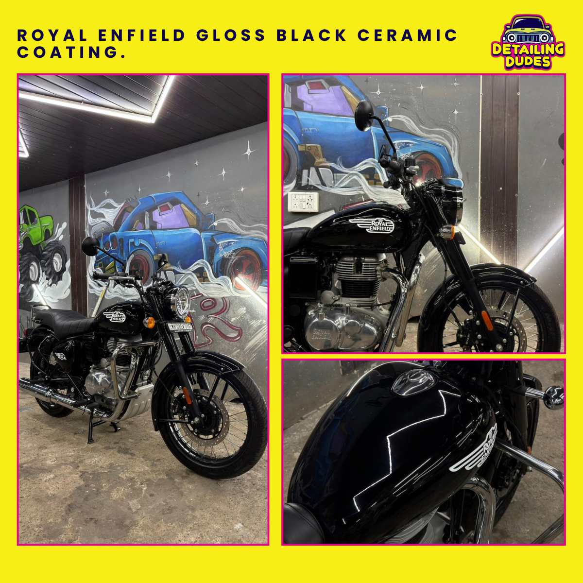 Protect and enhance your Royal Enfield Bullet 350 Gloss Black with our professional ceramic coating service in Marol, Andheri East, Mumbai. At Detailing Dudes, we specialize in premium bike ceramic coating that delivers deep gloss, long-lasting paint protection, and a sleek showroom finish. Our advanced ceramic coating shields your Bullet 350 from Mumbai’s dust, pollution, UV rays, water spots, and minor scratches, making bike maintenance easier and keeping the iconic black paint looking flawless for months. Conveniently located in Marol, Andheri East, Detailing Dudes is a trusted destination for Royal Enfield ceramic coating in Mumbai. Whether you’re a daily commuter or a weekend rider, our expert detailing ensures your bike stands out on every ride. 📍 Visit us in Marol, Andheri East, Mumbai 📞 Book your Royal Enfield Bullet 350 ceramic coating today with Detailing Dudes.